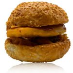 Lightly toasted, buttered roll with one Potato Cake and our Special Den Sauce